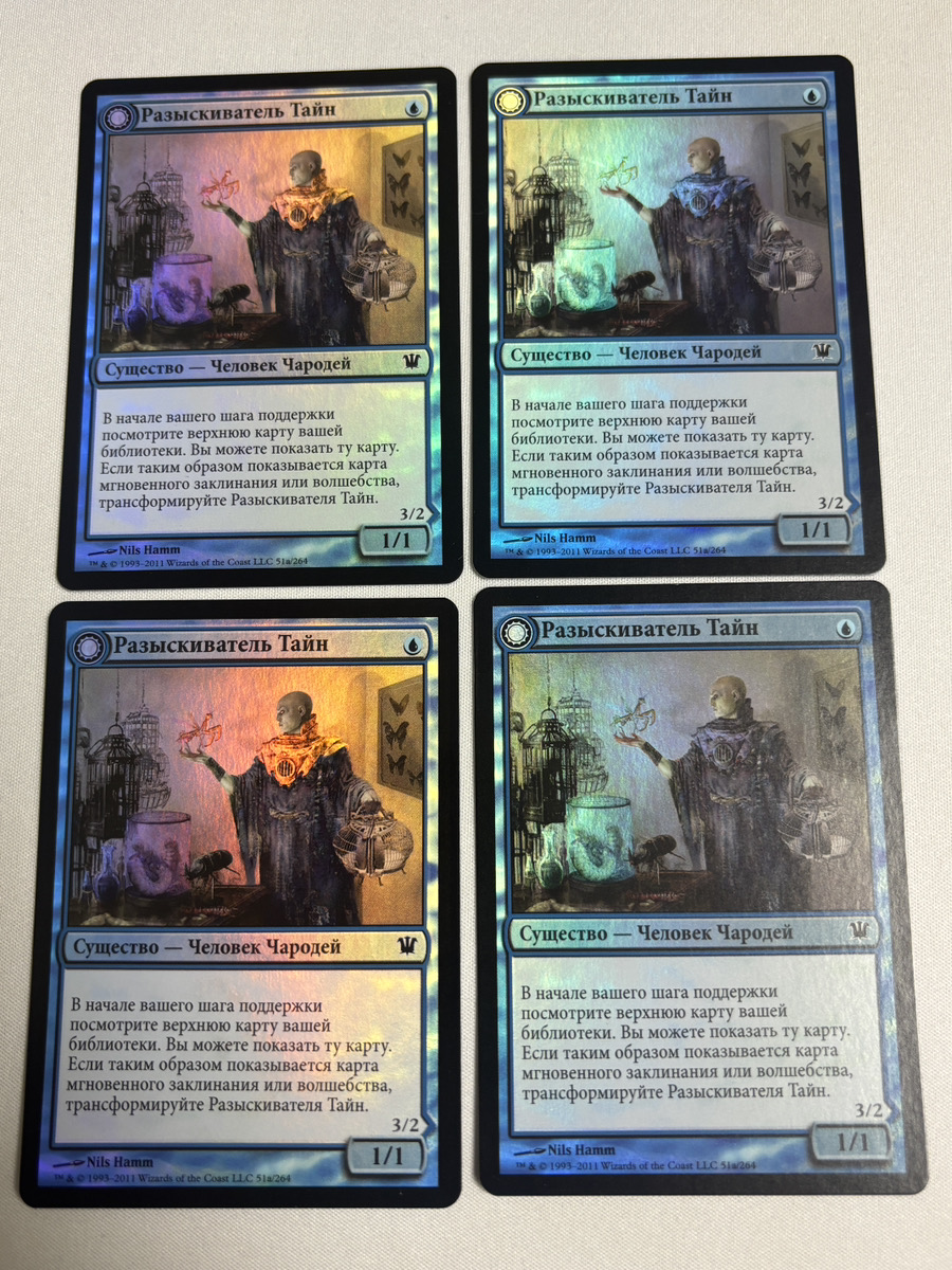 【Foil】秘密を掘り下げる者/Delver of Secrets》/《昆虫の逸脱者/Insectile Aberration》[ISD]ロシア語 4枚セット